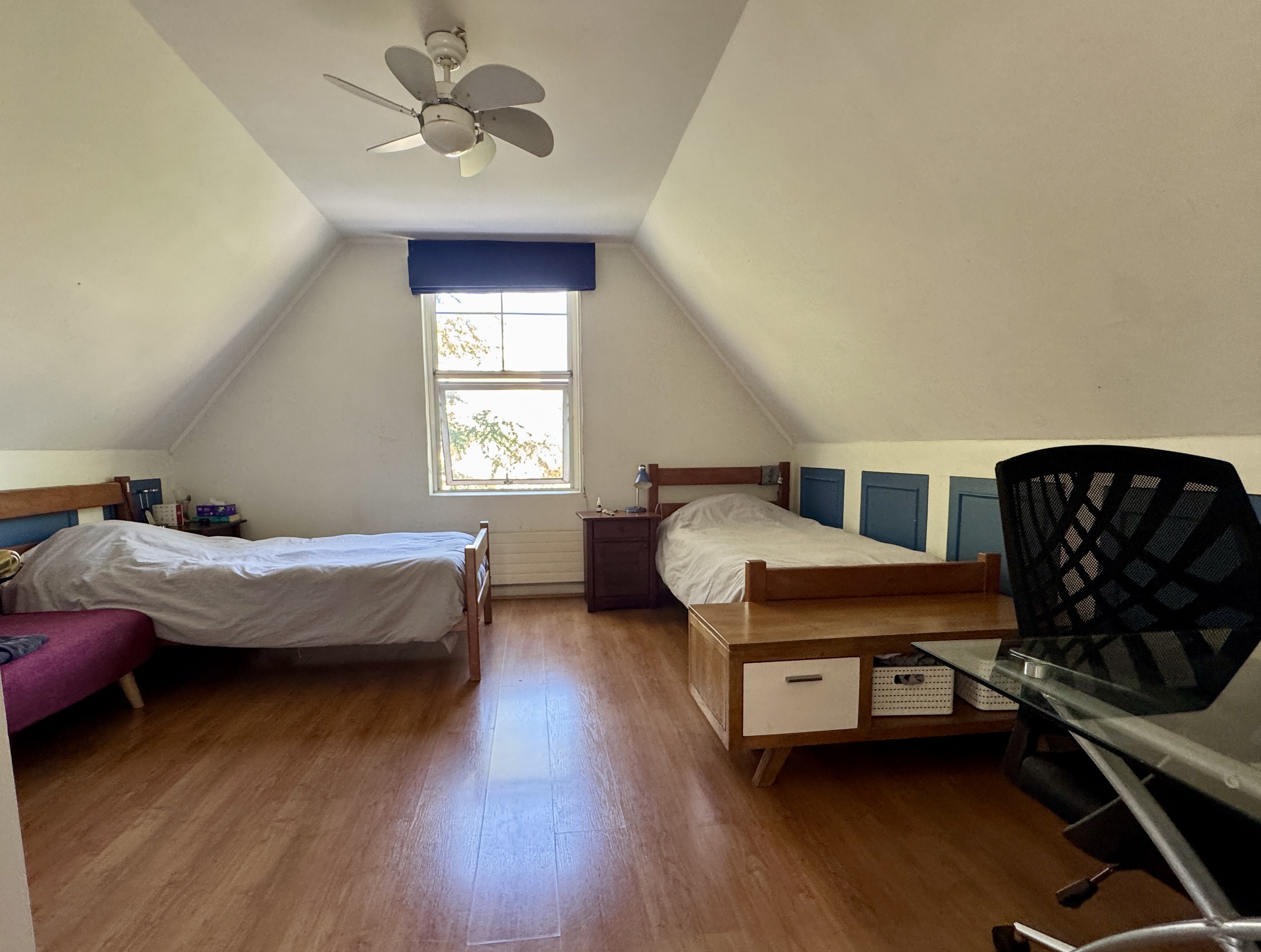 Tercer piso: Dos dormitorios que comparten una baño. Estacionamiento para 3 autos.